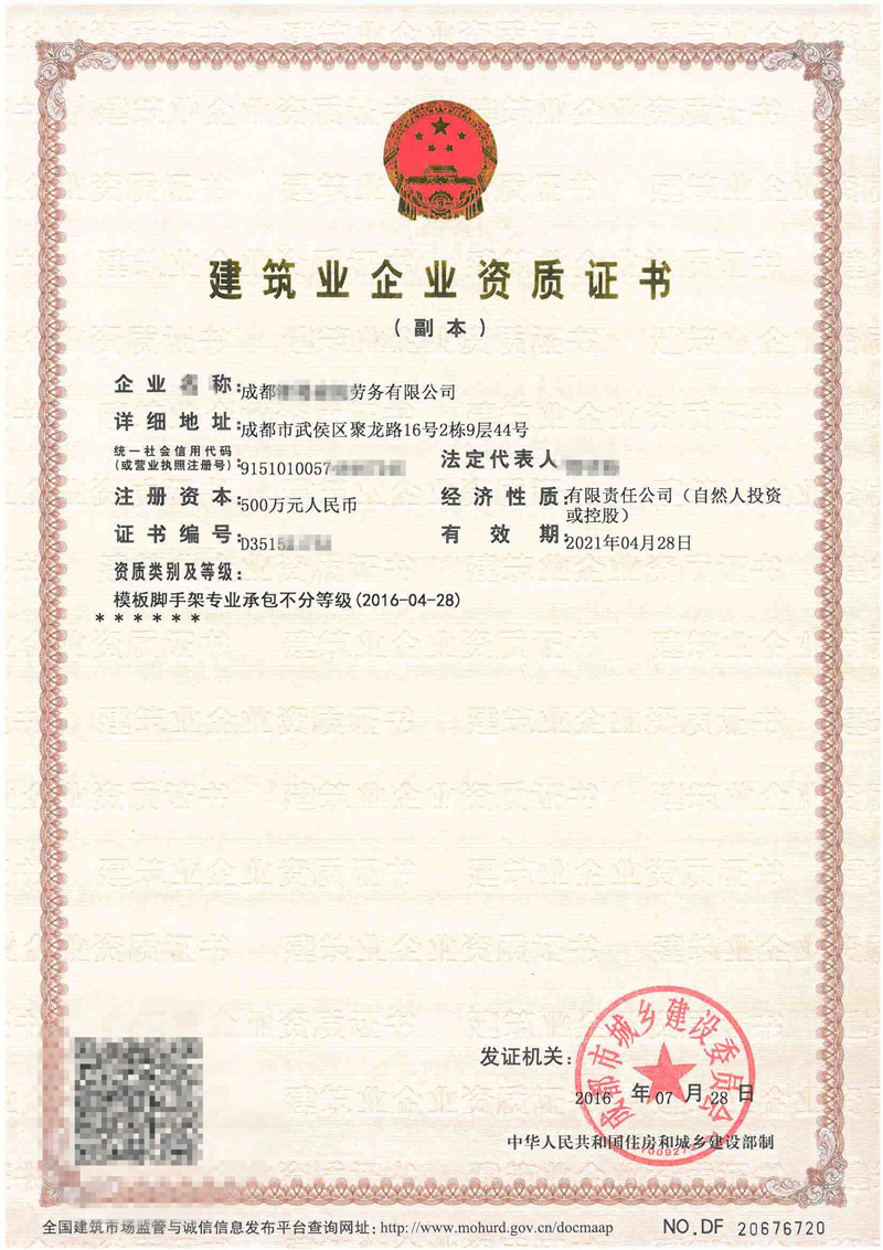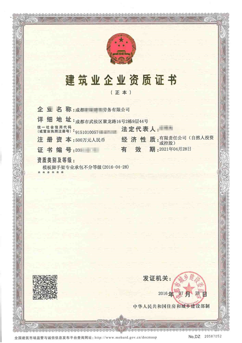 • 成都建筑資質代辦